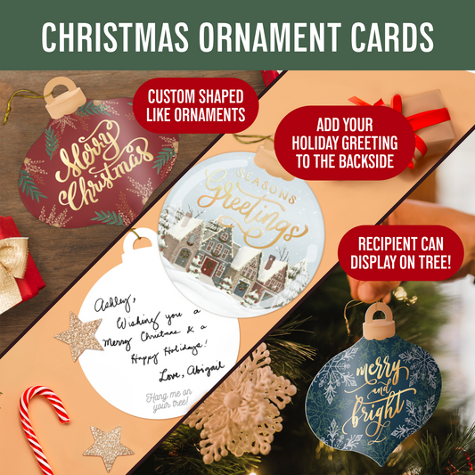 Unique Ornament Shaped Christmas Greeting Card Set - 24 Pack With Envelopes