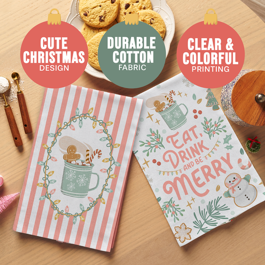 Perfectly Pink Christmas Towel Set of 2 - Eat Drink & Be Merry